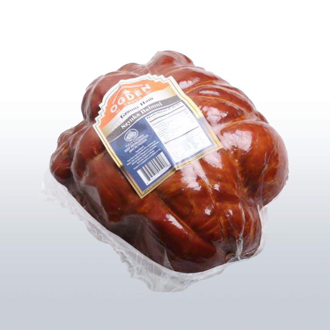 Our delicious, juicy, and tender Granny Ham starts with whole lean muscles, and then they are hand-trimmed and infused with seasoning that is simply superb! None of that artificial stuff for a perfect piece of ham every time.